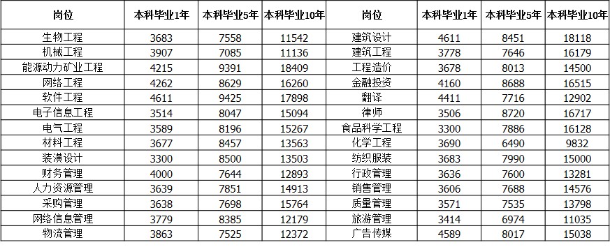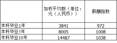 下表是2014年第四季度本科畢業(yè)1年、本科畢業(yè)5年和本科畢業(yè)10年的競爭性薪酬水平: