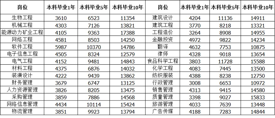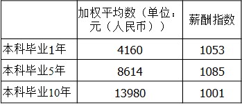 下表是2015年第三季度本科畢業(yè)1年、本科畢業(yè)5年和本科畢業(yè)10年的競(jìng)爭(zhēng)性薪酬水平: