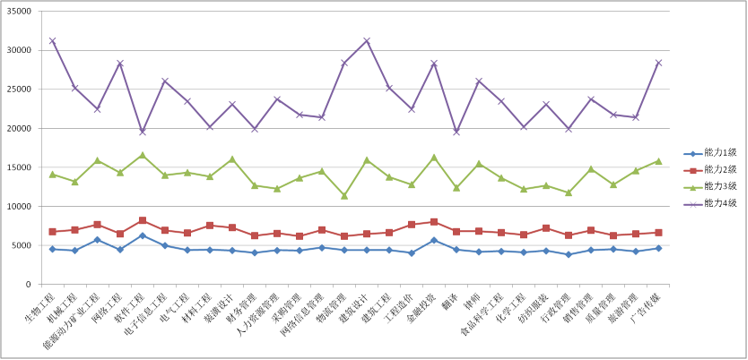 水木知行將各個崗位任職者根據(jù)個人專業(yè)知識技能以及擔負責任大小分為5個專業(yè)技術及管理能力等級;各個崗位不同能力等級薪酬數(shù)據(jù)信息對企業(yè)具有較大的指導價值;