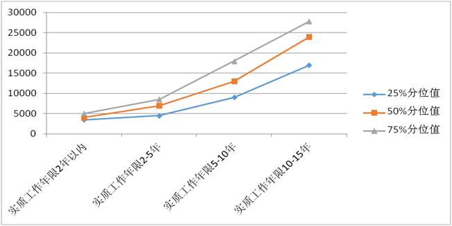 下表是2017年度人力資源管理崗位不同工作年限的薪酬數據: