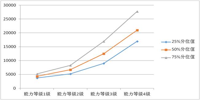 本次調研的能力等級分為4個等級,能力1級,能力2級,能力3級,能力4級。