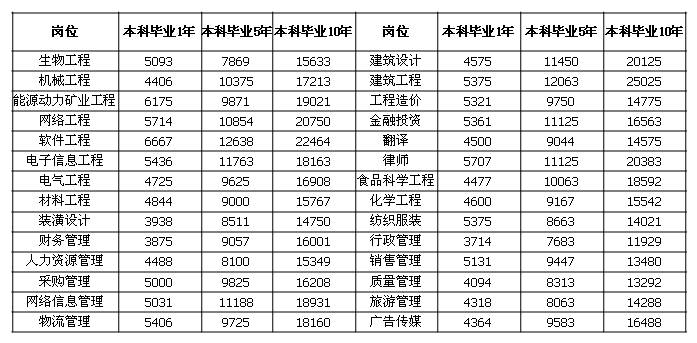 下表是2018年第一季度本科畢業(yè)1年、本科畢業(yè)5年和本科畢業(yè)10年的競爭性薪酬水平:
