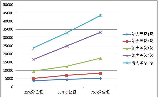下表是2017年度不同能力等級(jí)建筑工程崗位的薪酬數(shù)據(jù):