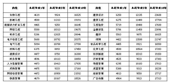 下表是2018年第二季度本科畢業(yè)1年、本科畢業(yè)5年和本科畢業(yè)10年的競(jìng)爭(zhēng)性薪酬水平: