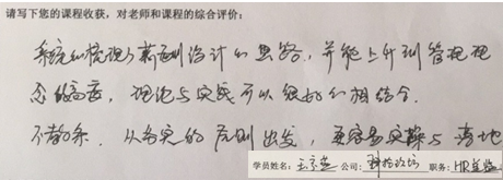 課程內(nèi)容新穎,通過學(xué)習(xí)對薪酬激勵、薪酬設(shè)計有了新的認(rèn)識和思路,課程內(nèi)容顛覆了對薪酬的認(rèn)識,學(xué)習(xí)到了很多新的方法和思路,總的來說達(dá)到了本次課程的目的。