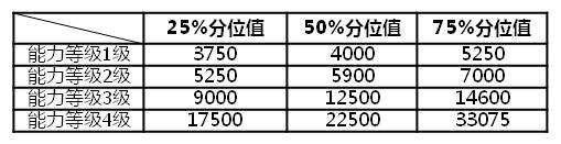 下表是2017年度不同能力等級物流管理崗位的薪酬數(shù)據(jù):
