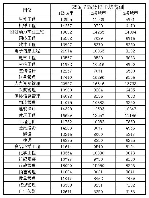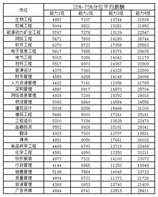 畢業(yè)畢業(yè)5年薪酬指數(shù)計算數(shù)據(jù):以各個崗位能力等級為2級處于50%-75%分位所有樣本以及能力等級為3級處于25%-75%所有樣本的平均值為基礎(chǔ),根據(jù)各個崗位所占權(quán)重,加權(quán)計算出總的薪酬數(shù)據(jù);