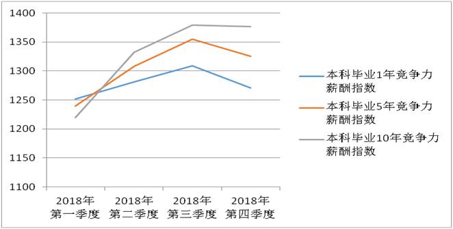 水木知行薪酬指數(shù)包括本科畢業(yè)1年競爭力薪酬指數(shù)、本科畢業(yè)5年競爭力薪酬指數(shù)、本科畢業(yè)10年競爭力薪酬指數(shù)三個指數(shù);自2013年第一季度開始按季度公布。以2012年第四季度有關(guān)薪酬數(shù)據(jù)為基準(zhǔn),經(jīng)過統(tǒng)計處理,取基點為1000,2013年后各個季度指數(shù)等于當(dāng)期薪酬統(tǒng)計數(shù)據(jù)除以薪酬基準(zhǔn)數(shù);