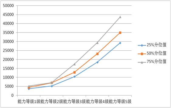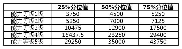 本次調研的能力等級分為5個等級,能力1級,能力2級,能力3級,能力4級, 能力5級。