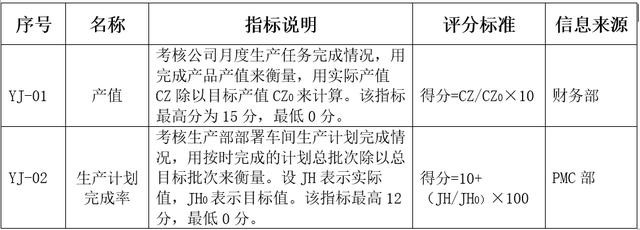 定量指標(biāo)分為絕對(duì)量指標(biāo)和相對(duì)量指標(biāo)兩種,絕對(duì)量指標(biāo)如產(chǎn)值,相對(duì)量指標(biāo)如生產(chǎn)計(jì)劃完成率。如何對(duì)定量指標(biāo)進(jìn)行評(píng)價(jià)標(biāo)準(zhǔn)的設(shè)計(jì)和說(shuō)明?我們舉例來(lái)說(shuō)明。