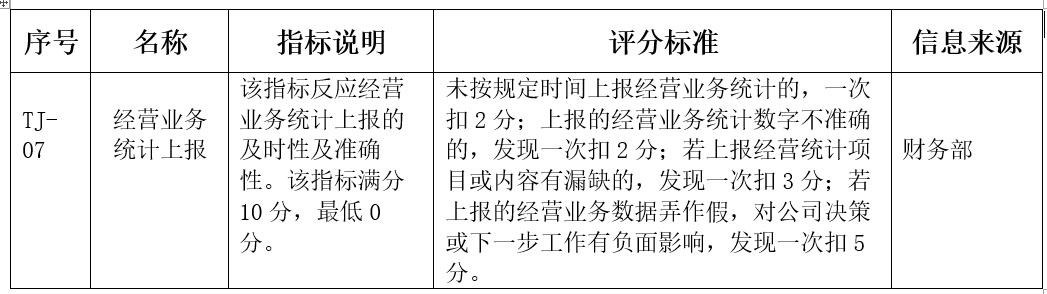 定性指標(biāo)與定量指標(biāo)的差別在于,績(jī)效目標(biāo)是定性的描述而不是定量的精確數(shù)字。如案例所示“經(jīng)營(yíng)業(yè)務(wù)統(tǒng)計(jì)上報(bào)”,就是定性指標(biāo)。