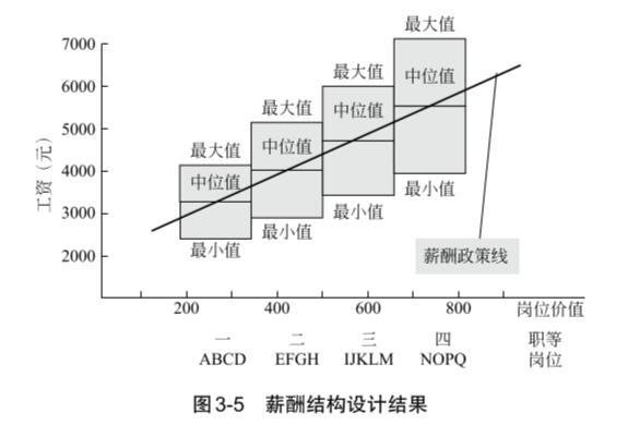 也可以等差設計。一般,等比設計級差為 5%~ 10%,等差設計根據企業(yè)薪酬策略可以分為 5~ 10級。薪酬結構設計結果如圖 3-5所示。