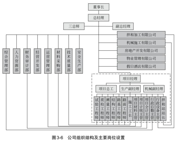 公司下設(shè)綜合管理部、人力資源部、財務(wù)審計部、經(jīng)營開發(fā)部、運(yùn)營管理部、材料采購部、技術(shù)質(zhì)量部、安全生產(chǎn)部等 8個部門以及拌和加工有限公司、機(jī)械施工有限公司、房地產(chǎn)開發(fā)有限公司、物業(yè)管理有限公司、假日酒店有限公司等 5個全資子公司。