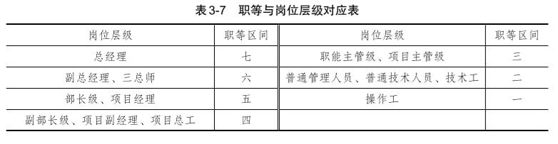 通過對崗位評價結(jié)果的詳細(xì)分析,可以發(fā)現(xiàn)薪酬職等與崗位層級基本有下列對應(yīng)關(guān)系,見表 3-7。
