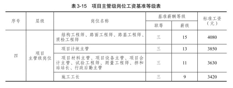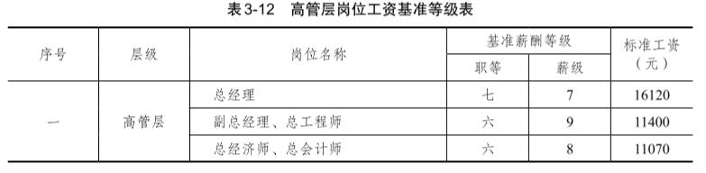經(jīng)理、三級項(xiàng)目經(jīng)理定為五等,其余定為四等。項(xiàng)目高層崗位工資基準(zhǔn)等級如表 3-14所示。