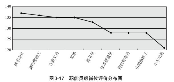 價分?jǐn)?shù)分布,將中層管理崗位劃分為4個層級,具體等級如表3-13所示。