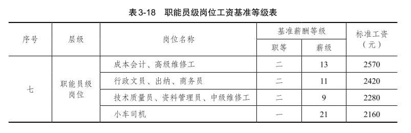 根據(jù)崗位評價分?jǐn)?shù)分布,將職能員級崗位劃分為4個層級,職能員級崗位工資基準(zhǔn)等級如表3-18所示。