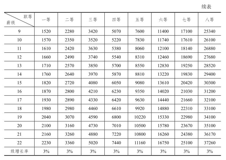 需要指出的是,近年來由于薪級增長率有增大趨勢,通過將級數(shù)增加,基本滿足了崗位工資晉級需要,一般不必再套入高一等級繼續(xù)晉級。