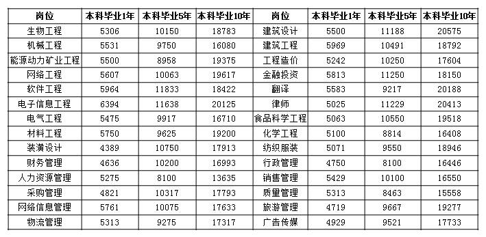 下表是2020年第二季度本科畢業(yè)1年、本科畢業(yè)5年和本科畢業(yè)10年的競爭性薪酬水平: