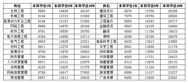 下表是2021年第一季度本科畢業(yè)1年、本科畢業(yè)5年和本科畢業(yè)10年的競(jìng)爭(zhēng)性薪酬水平: