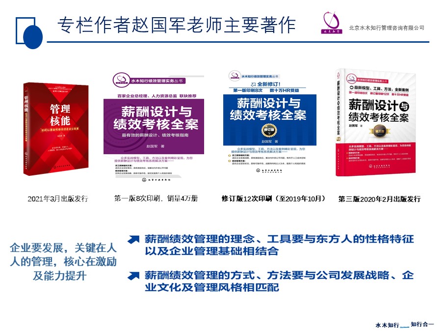 有關(guān)薪酬設(shè)計(jì)以及績效考核內(nèi)容請見趙國軍老師著作《薪酬設(shè)計(jì)與績效考核全案》(第三版),該書已累計(jì)印刷30余次。