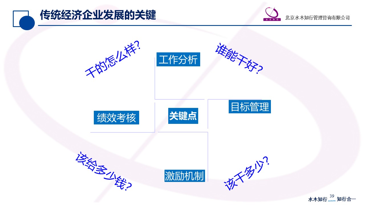 那么如何解決這個(gè)問(wèn)題呢,“誰(shuí)能干好”、“該干多少”、“該給多少錢(qián)”、“干的怎么樣”就是企業(yè)管理中的“工作分析”、“目標(biāo)管理”、“激勵(lì)機(jī)制”和“績(jī)效考核”,這四個(gè)方面都是非常重要的衡量,做好了這四個(gè)方面,企業(yè)管理就能解決好專業(yè)分工與效率均衡問(wèn)題,企業(yè)就能超越行業(yè)發(fā)展,企業(yè)能挺過(guò)行業(yè)周期至暗時(shí)刻,做好儲(chǔ)備迎接新發(fā)展周期的到來(lái)。