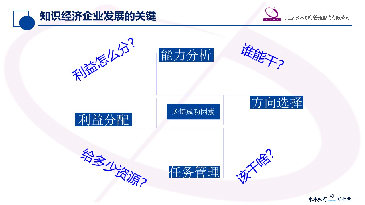 - 知識經(jīng)濟生產(chǎn)組織發(fā)展模型“誰能干”、“該干啥”、“給多少資源”、“利益怎么分”這四個方面,就是企業(yè)管理的“能力分析”、“方向選擇”、“任務(wù)管理”、“利益分配”。見下圖知識經(jīng)濟生產(chǎn)組織發(fā)展模型。