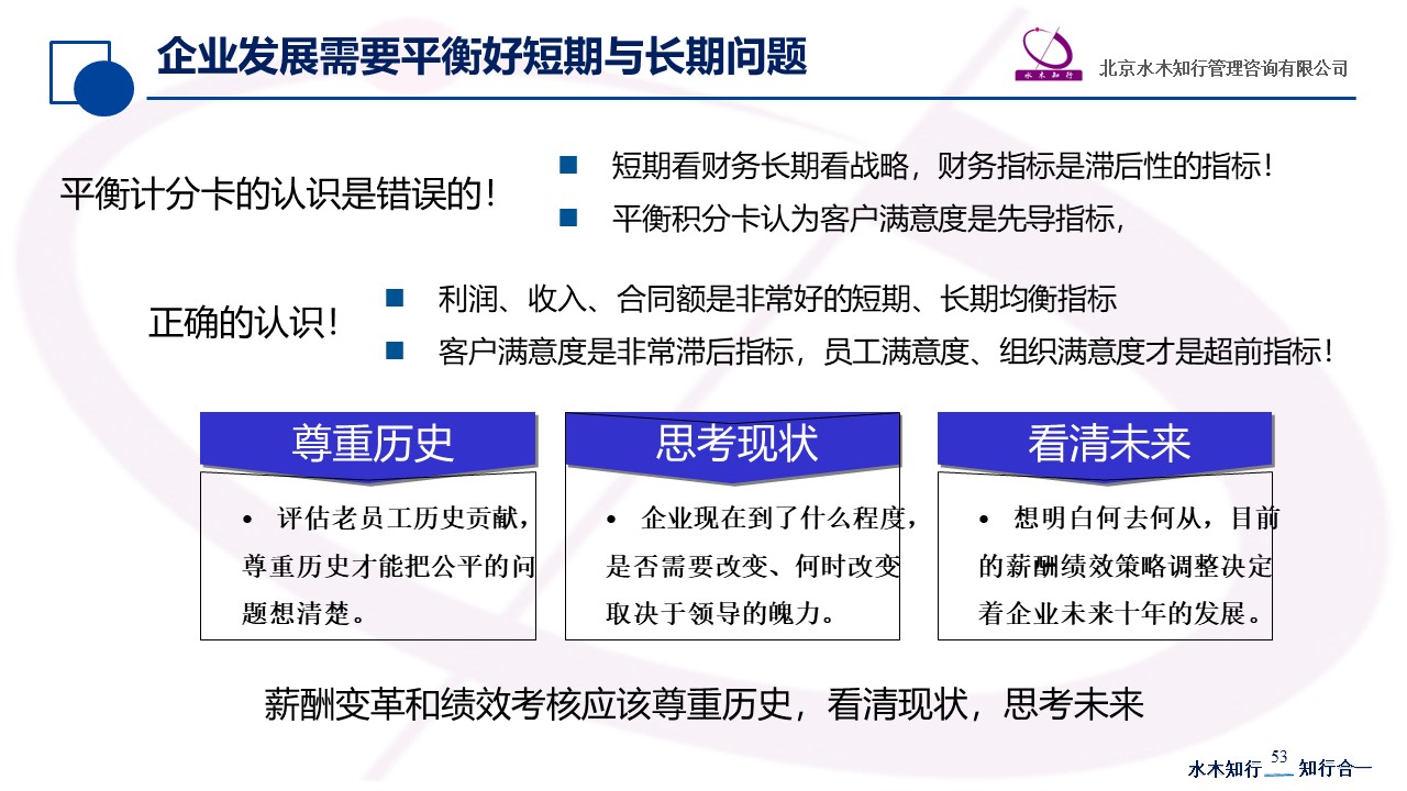 薪酬管理和績(jī)效管理在企業(yè)管理中占有最重要的地位,薪酬變革和績(jī)效考核應(yīng)該尊重歷史,看清現(xiàn)狀,思考未來。