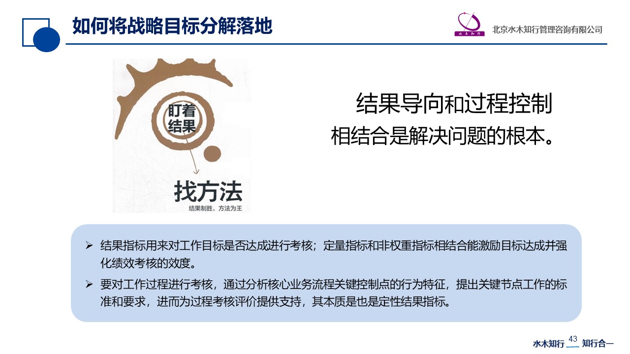 那么,應(yīng)該如何解決這些問題呢?結(jié)果導(dǎo)向和過程控制相結(jié)合是解決這些問題的根本。