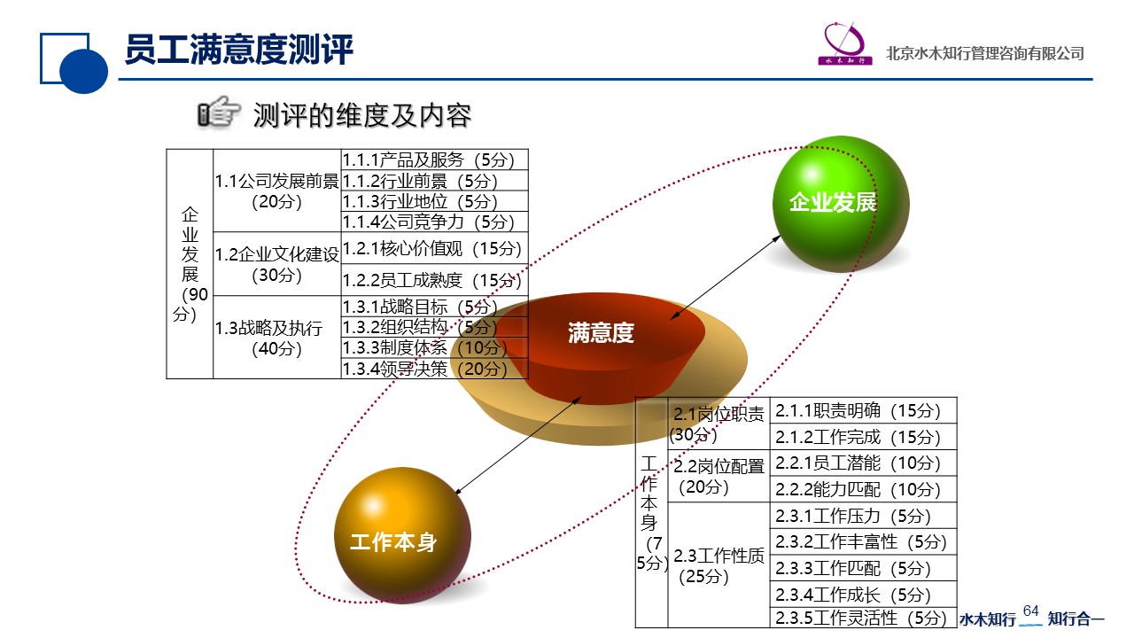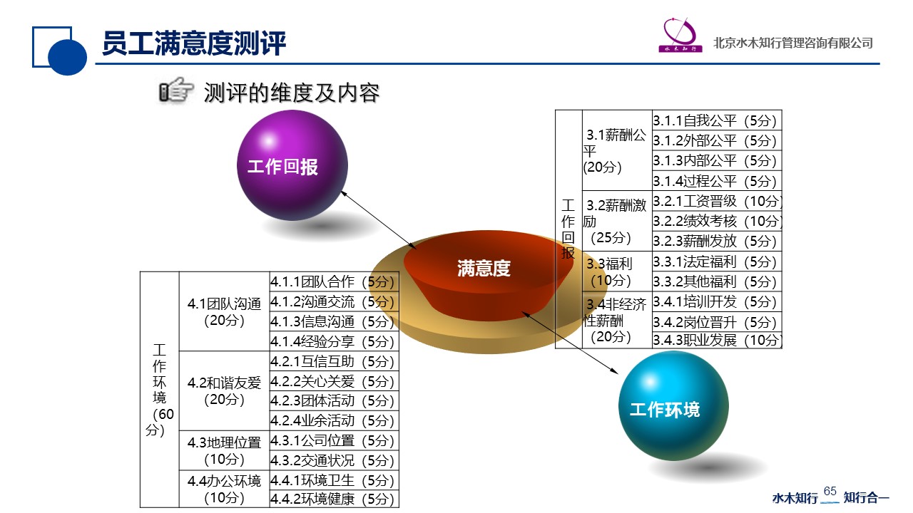 通過員工滿意度測評可以幫助管理者傾聽員工的心聲,是了解員工需求的有效方法;還可以用于診斷企業(yè)人力資源管理現(xiàn)狀,定期的員工滿意度調(diào)查相當于為企業(yè)進行定期“體檢”,根據(jù)調(diào)查結(jié)果分析企業(yè)管理中存在的問題,并提出針對性的管理改善建議,提高管理水平,使員工滿意度獲得提升、公司競爭力得到進一步增強。