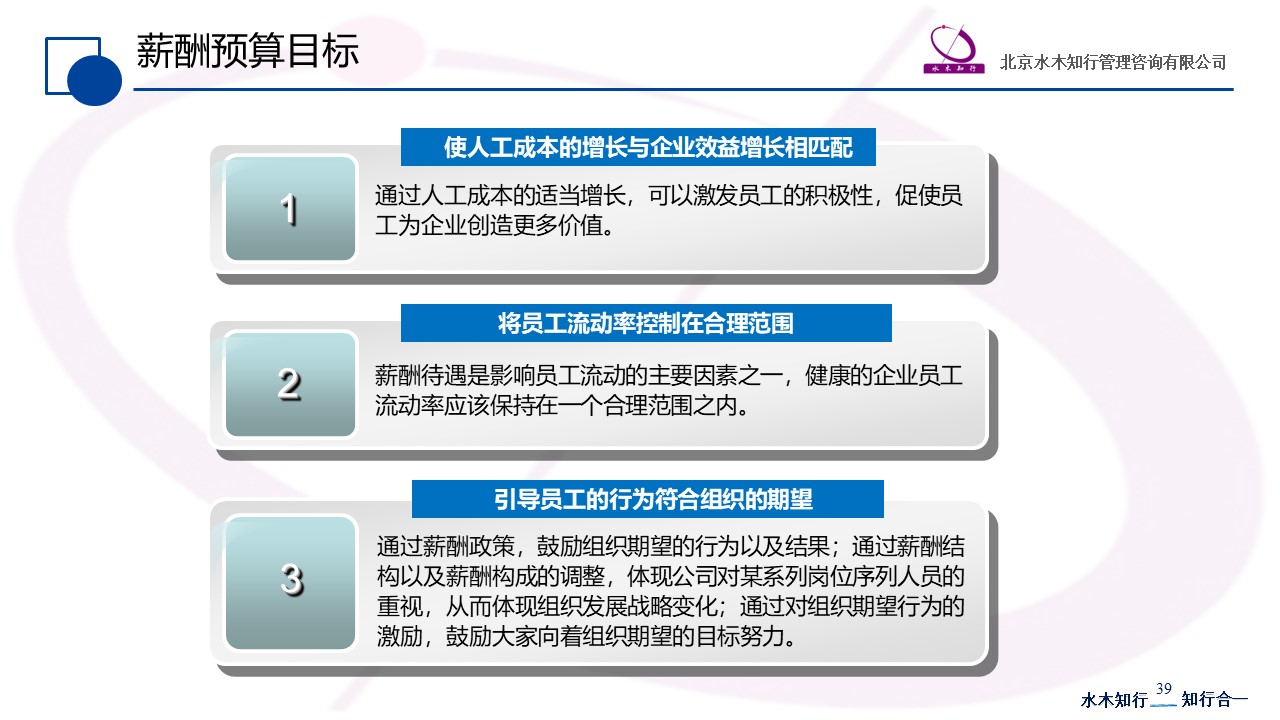 企業(yè)在每一個財政年度開始前會制定下一年度的財務(wù)預算,而薪酬預算是財務(wù)預算的一個重要組成部分。薪酬預算是指組織在薪酬管理過程中進行的一系列人工成本開支方面的權(quán)衡和取舍。
