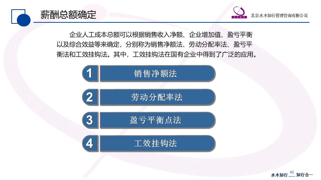 銷售凈額法是根據(jù)對(duì)市場(chǎng)銷售收入的預(yù)測(cè),分析企業(yè)收入人工成本率變化趨勢(shì),并參考同行業(yè)相關(guān)數(shù)據(jù),確定企業(yè)人工成本總額的一種方法。