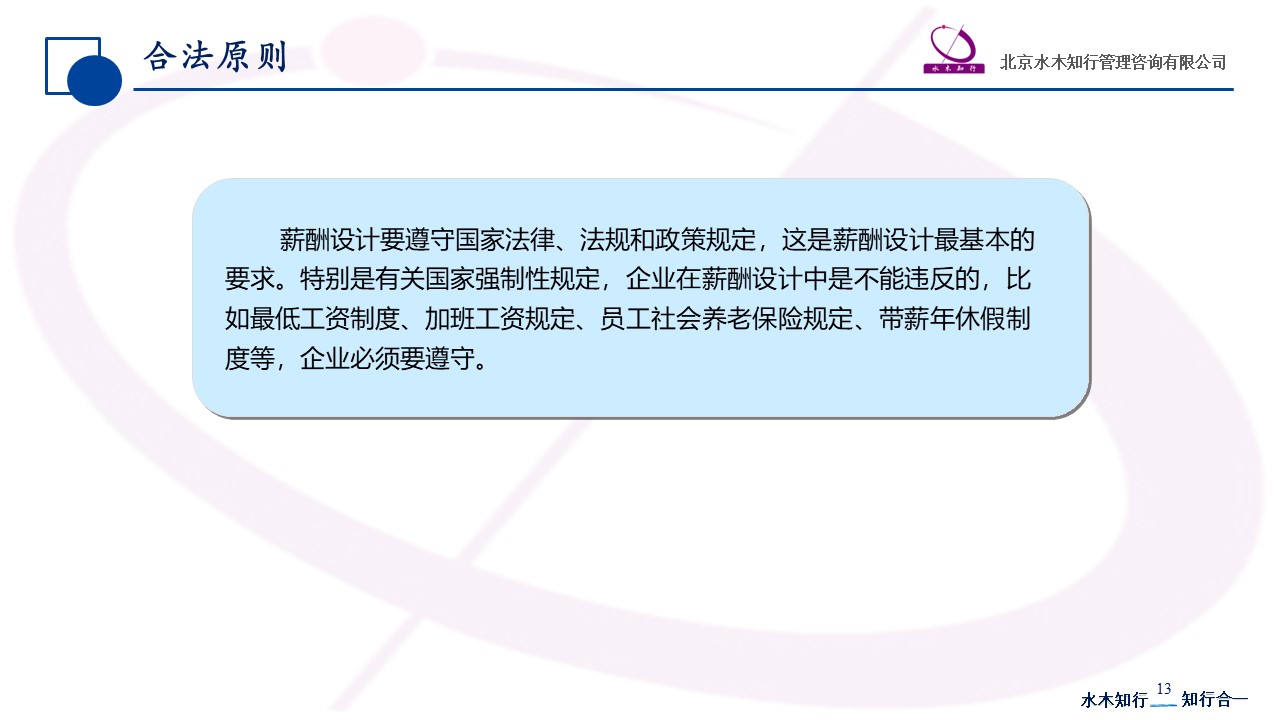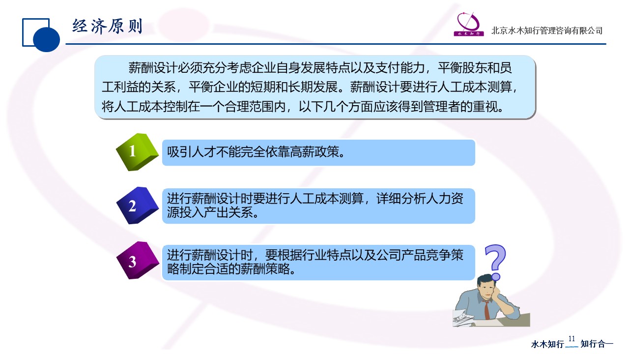 薪酬體系設計應堅持外部競爭、經(jīng)濟原則、合法原則