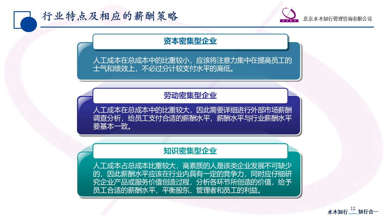 對于資本密集型企業(yè),人工成本在總成本中的比重較小,應該將注意力集中在提高員工的士氣和績效上,不必過分計較支付水平的高低。