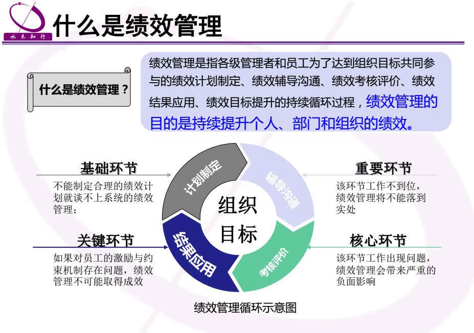 績(jī)效管理是由績(jī)效計(jì)劃制定、績(jī)效輔導(dǎo)實(shí)施、績(jī)效考核評(píng)價(jià)、績(jī)效考核面談等環(huán)節(jié)組織的一個(gè)系統(tǒng),制定切實(shí)可行的績(jī)效計(jì)劃,是績(jī)效管理的第一步,也是最重要的一個(gè)環(huán)節(jié)。制定了績(jī)效計(jì)劃,考核期末就可以根據(jù)由員工本人參與制定并做出承諾的績(jī)效計(jì)劃進(jìn)行考核。對(duì)于出色完成績(jī)效計(jì)劃的組織和個(gè)人,績(jī)效考核會(huì)取得優(yōu)異評(píng)價(jià)并會(huì)獲得獎(jiǎng)勵(lì),對(duì)于沒(méi)有完成績(jī)效計(jì)劃的組織和個(gè)人,上級(jí)領(lǐng)導(dǎo)應(yīng)幫助下屬分析沒(méi)有完成績(jī)效計(jì)劃的原因并幫助下屬制定績(jī)效改進(jìn)計(jì)劃。